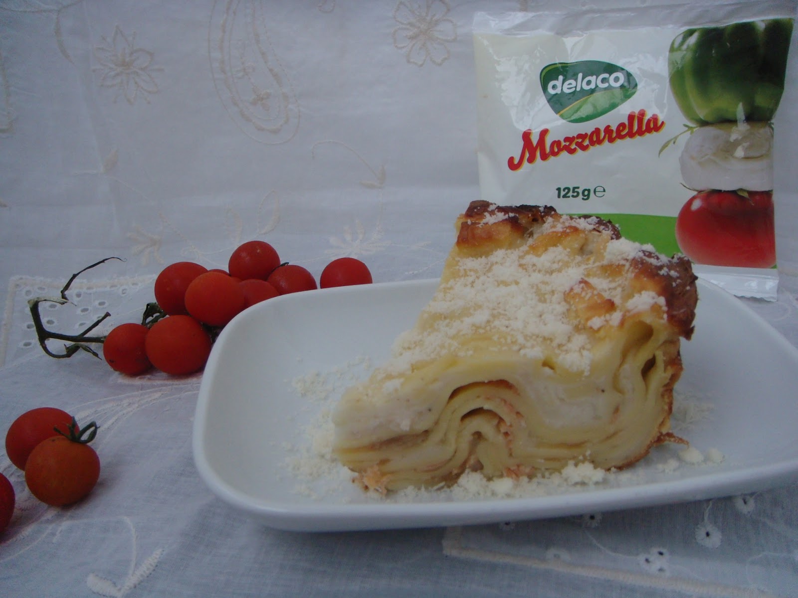 Lasagna este o mancare de origine italiana si in functie de "umplutura" poate fi un fel de mancare pentru cina de toate zilele sau un fel elegant , servit invitatilor , in zi de sarbatoare. Astazi am pregatit Lasagna con salmone. O lasagna cu foi facute in casa, somon Alferdo Seafood si mozzarela. Sosul bechamel preparat cu atata rabdare si parmezanul se impletesc perfect cu gustul pestelui. Desigur o lasagna adevarata se face cu foi home made asa ca dis de dimineata, am inceput fabricarea lor. Am folosit :